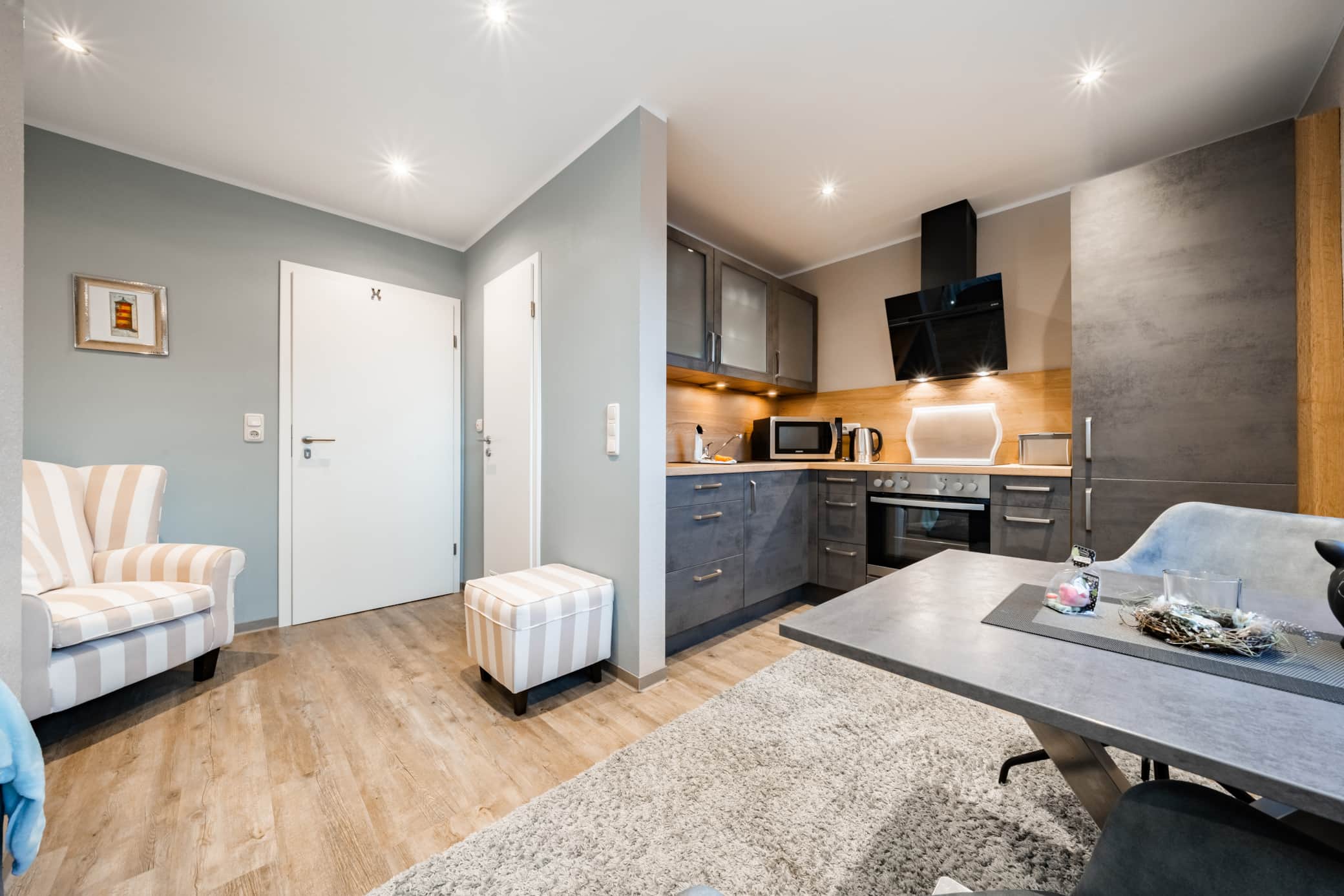 Trotz der ruhigen Lage sind die bekannten Küstenorte der Region gut erreichbar. Das beliebte Fischerdorf Greetsiel liegt nur rund 5 Kilometer entfernt und ist mit dem Auto in etwa 10 Minuten zu erreichen. Mit seinem historischen Hafen, den kleinen Geschäften und gemütlichen Cafés versprüht Greetsiel ein typisch maritimes Flair.